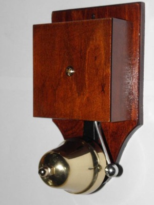 Самый простой вариант — дверной звонок проводного типа. Он работает по следующему принципу: