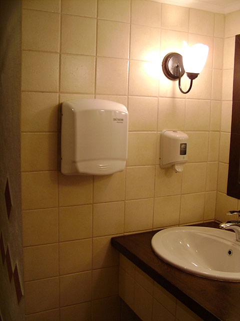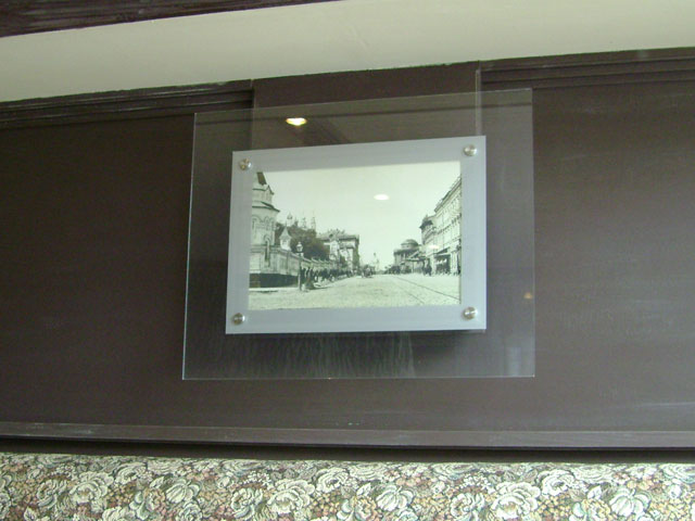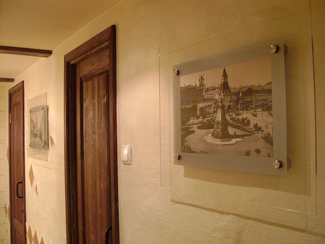 Чем-то другим этот трактир особо не выделяется, интерьер понравился, на первом этаже у стены можно сидеть на мягком диванчике, на стене — копии фотографий старой дореволюционной Москвы. Некоторые, знаю, оценивают заведения по качеству туалетов. Здесь туалет чистый, аккуратный, и тоже с фотографиями Москвы.
