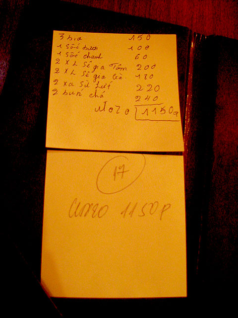 Савеловский рынок. Кафе “Ханой” Кафе “Ханой”, интерьер Кафе “Ханой”, счет на вьетнамском языке