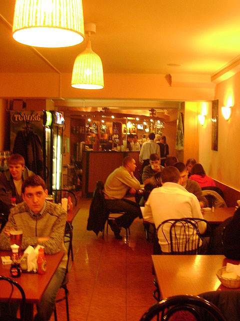 С напитками все более-менее понятно. Минеральная вода, чай, кофе, пиво. Разве что обескураживают цены. «Невское» и «Сибирская корона» — 45 рублей. «Сибирская корона белое» — 55. «Туборг» — 65. За поллитровую, ясное дело, кружку.