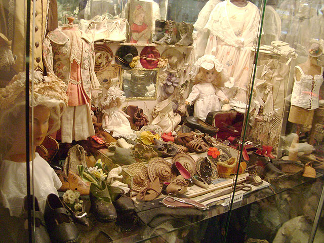 Я замерла у витрин с кукольными аксессуарми. Представляете, раньше покупала девочка куклу в магазине, а затем шла в специальный отдел кукольного магазина и выбирала для куклы одежду, обувь, предметы интерьера для кукольного дома. Это тоже отдельная индустрия была — фарфоровую посуду для кукольных сервизов делали на тех же заводах, где и фарфор для людей (например, на заводах «Гарднер» и «Кузнецов», выпускавших лучший фарфор в России). А швейные зингеровские машинки для кукол… А дома…Настоящие дома с интерьером, копирующие устройство «человеческого» жилья. Причем так все искусно, так красиво! Пластиковое «великолепие» домика Барби — просто меркнет.